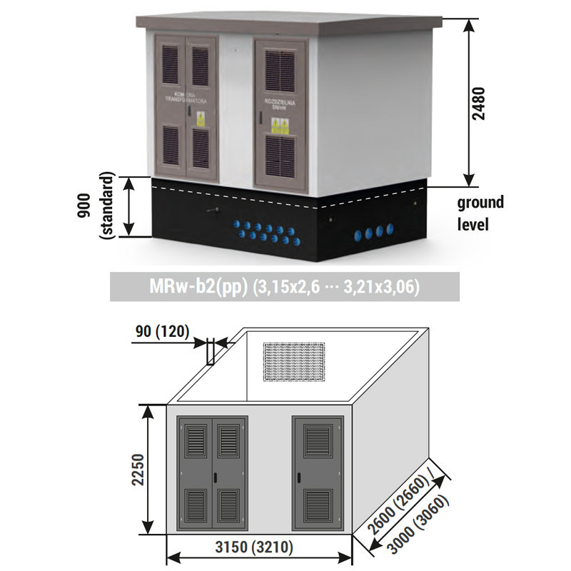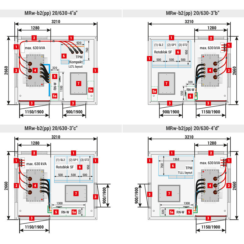Postaja z notranjim posluževanjem MRw-b2, 630kVA, do 12 NN odvodov