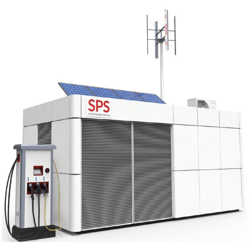 SPS je inteligentna transformatorska postaja s hranilnikom energije, priključki na obnovljive vire energije in polnilnicami za električna vozila.